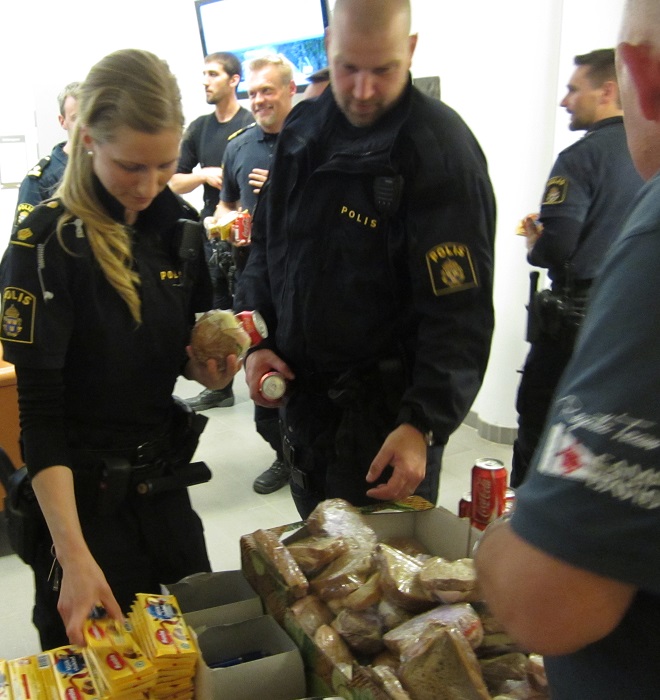 För att symboliskt visa vår uppskattning till dem som ingår i SPT-kommenderingen såg vi till att var och en fick en smörgås, chokladkaka och en dricka med sig ut i natten.