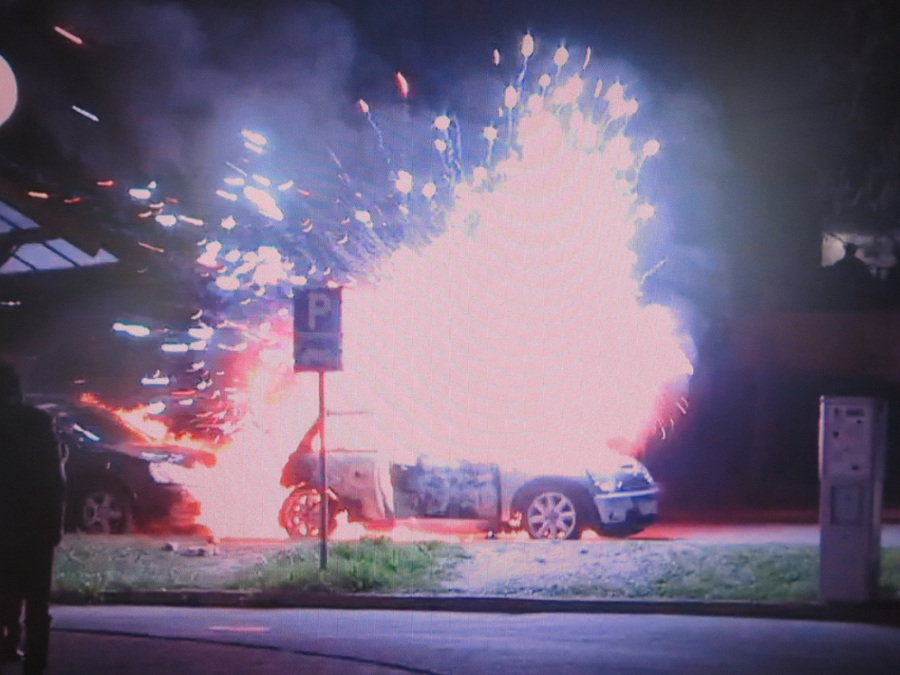 Han förklarade polisens hjälpande roll, tillsammans med brandkåren, och hur de blir angripna av massor av ungdomar med stora stenar som de kastar mot poliserna. Det är svårt att i mörkret och folkmassorna se vilka som är skyldiga till stenkastning eller mordbränder, det blandar sig kanske ett femtiotal med över hundra vanliga nyfikna. Det är en extremt svår arbetsmiljö.
