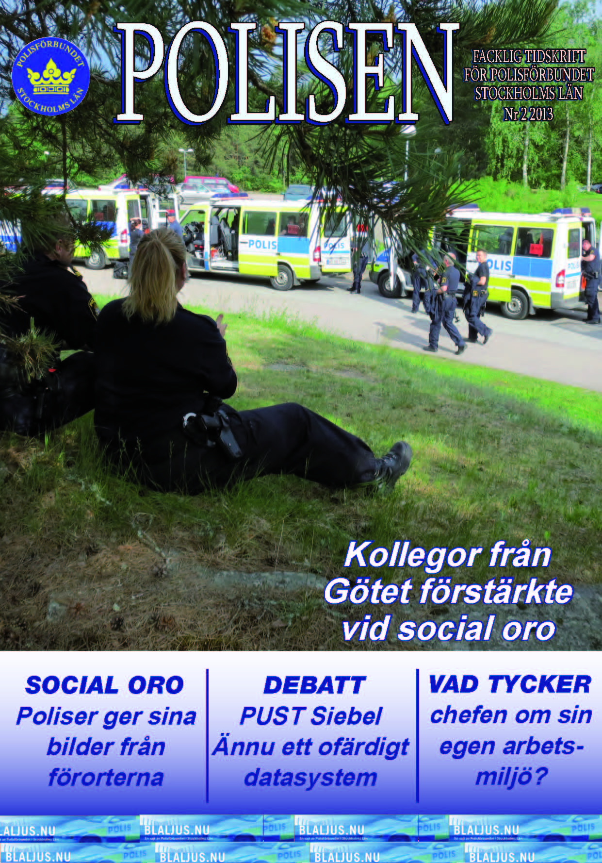 POLISENS sommarnummer, som nu kommer till alla våra medlemmar, handlar framför allt om den sociala oron som sysselsatt många poliser under våren. Hur upplevde poliser den verklighet som de möttes av? Men som vanligt får Du även läsa om allt som är aktuellt i våra föreningar - och i detta nummer en genomgång av hur chefer inom Polisen upplever sin arbetsmiljö. Nöjsam läsning!