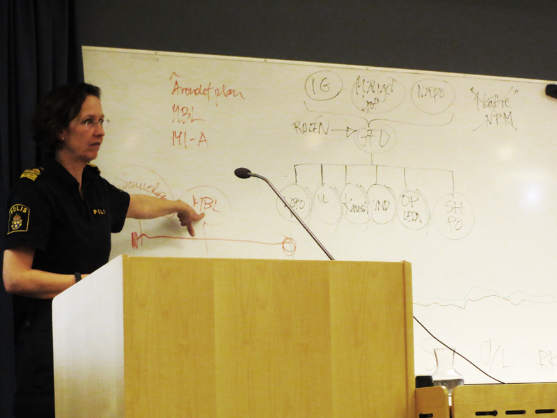 Gästtalare vid årsmötet var Carolina Paasikivi, polisområdeschef i SYD. Hon fick ordet för ett föredrag. Med utgångspunkt från sina erfarenheter som polisanställd, polischef och jurist, beskrev hon hur hon ser på sitt ledarskap. Karolina beskrev poliskulturen som hon upplevt den, och hur lätt det kan vara att trampa någon kategori polisanställda på tårna. Hon lyckades även ge en beskrivning på vägen mot ”nyläge två” och arbetet i ”klustergrupper” som var väldigt pedagogisk. (En inte helt enkel uppgift) Hon var väldigt tydlig med att personalens delaktighet är ett viktigt mål för henne och en förutsättning för att förändringsarbetet skall bli framgångsrikt.