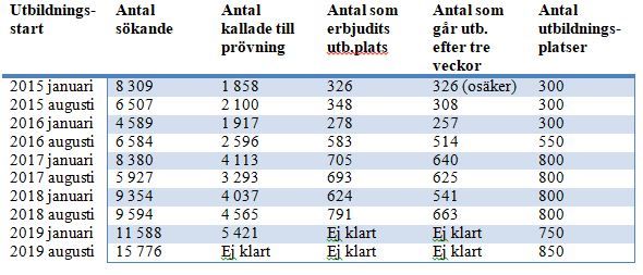 Så presenteras ansökningsantalet på Polisen.se. Värt att notera är dock att det även finns en talande tabell, som anger antal sökande jämfört med antal antagna för de senaste åren.
