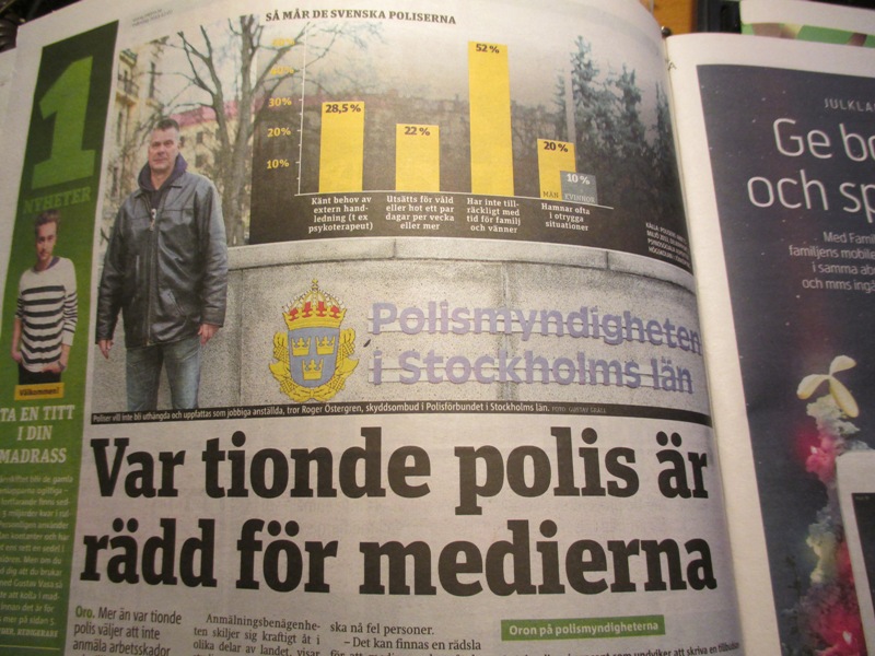 Roger säger till Metro att siffrorna är alarmerande, det verkar även som att poliser inte vill göra arbetsskadeanmälningar som ju kan bli offentliga av solidaritet med sina kollegor, eftersom polistaktiska överväganden kan komma i orätta händer vid en anmälan. Metroartikeln har lett till en notis i TT, som citeras flitigt av många tidningar idag.