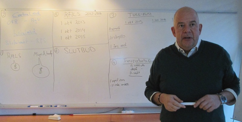 Stefan Eklund gästtalade vid årsmötet och gav en bild över omorganisationen och dess möjligheter men även hinder som skymtas i samband med den. Han gav även kortare lägesbeskrivning av RALS arbetet och förmedlade en bekymmersam bild. Andreas (bilden) och Kjell som efter lunch hade en längre genomgång om förhandlingsläget i RALS fick känslorna att svalla hos alla. Ingen tvekan om att kamplusten finns inom Polisföreningen Birger Jarl.