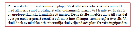 UPPDATERING: Blåljus har nu från flera håll hört om polisens defensiva taktik i samband med händelsen ovan. Samtidigt är det som sagt, en balansgång. Så här formuleras det i Beslut i Stort i samband med Social oro i Sveriges kanske mest utsatta förorter, i Järva.