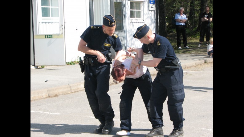 polis och sedan tryckts hårt mot väggen. Där vidtogs inga