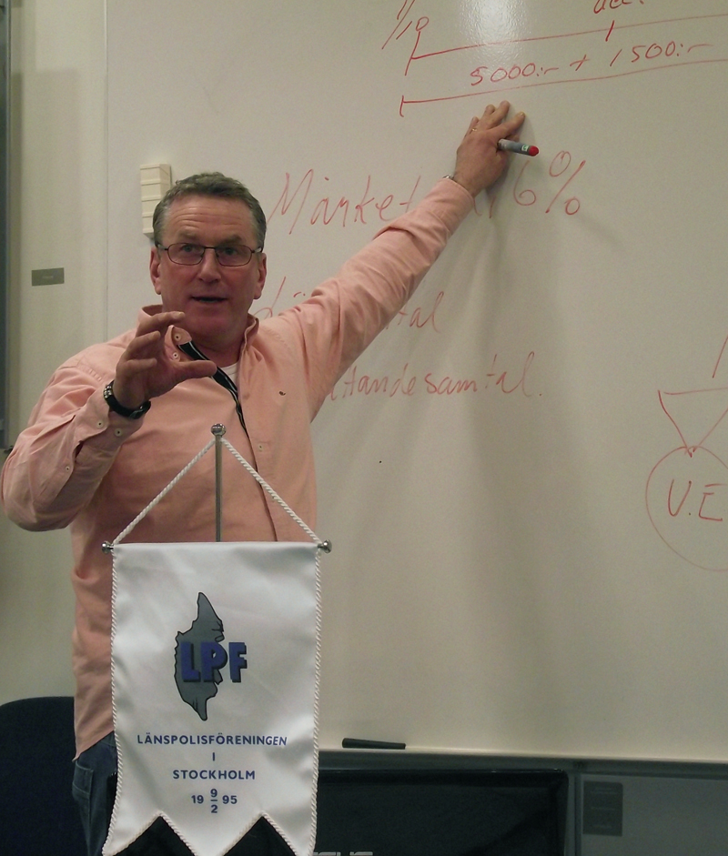 Stefan Eklund informerade efter årsmötet om aktuella frågor inom Polisförbundet, särskilt inom rättshjälpsområdet, vilka brott som är frekventa, vilka rättigheter man har som medlem och hur framgångsrika Polisförbundet varit i olika ärenden. Han berättade en hel del om praxis och hur Förbundet arbetar för att se till att våra medlemmar får sina rättigheter tillgodosedda. Bland annat redovisades domen i tingsrätten mot polisen som blev dömd för framkallande av fara, när han var i en nödvärnssituation på Birger Jarlsgatan, och hur vi hanterar det fackligt.