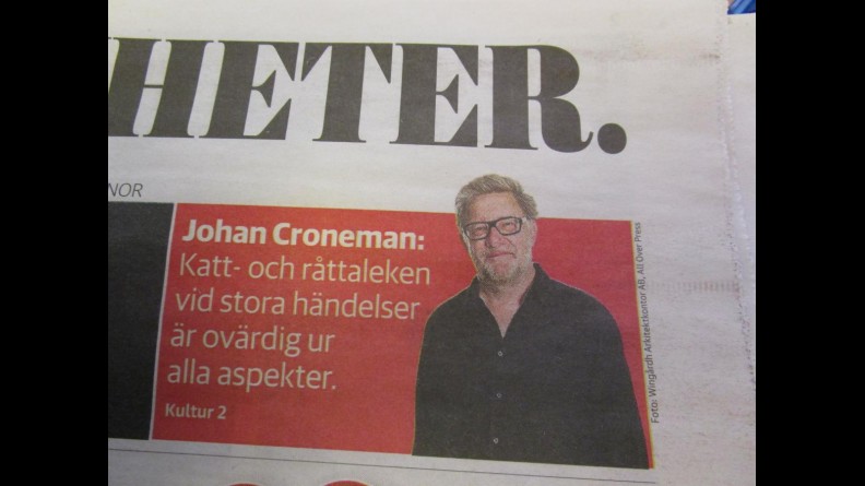 Croneman avslutar sin något magsura krönika med orden: ”Ge också fan i att skicka fram talesmän i tv som inte kan tala. Eller som påstår att inget kan sägas, och påstå framför allt inte att allt är frid och fröjd och att lugn råder på våra gator. Sluta att offentligt förolämpa vår intelligens och underskatta vår oro. Tack, herr talesman.”