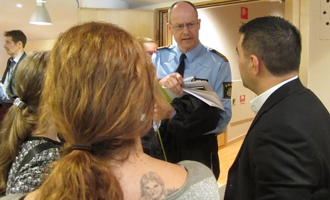 Gästtalare på eftermiddagen var vår egen länspolismästare Mats Löfving. Han kom direkt från ett nationellt länspolismästarmöte, och hade prioriterat att komma på vår stämma. Han berättade hur han inventerat olika problembilder i distriktet, och vilka åtgärder han har på gång tillsammans med sin nya ledningsgrupp. Han betonade bland annat att förbättringar för olika grupper kan genomföras utan att varje fråga måste komma upp på länspolismästarens bord och vända. Frågor skall lösas så nära personalen och verkligheten som möjligt. Efter talet fick länspolismästaren svara på ett flertal frågor från auditoriet, men även på rasten efteråt, fortsatte en livlig diskussion.