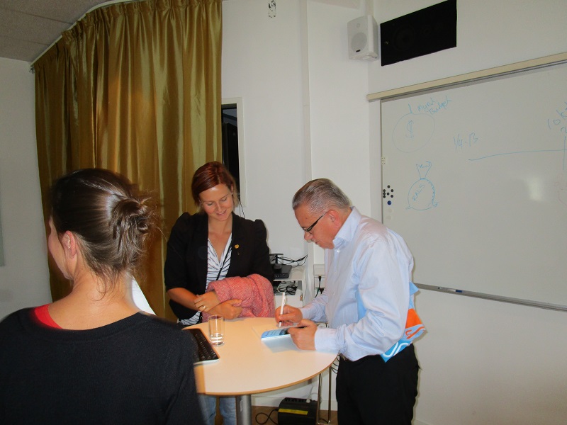 nedan. Dessutom fick deltagarna möjlighet att få sina egna böcker signerade av professorn, kön var längre än som syns på bilden...