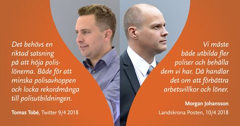 Så sent som igår, skrev Polisförbundets ordförande, Lena Nitz, en debattartikel under rubriken "Svik inte landets poliser". Hon skrev bland annat: