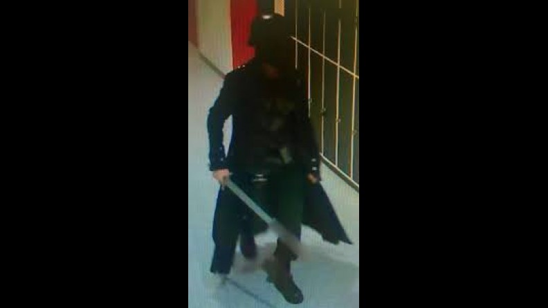 svärdsbeväpnad yngling gick runt på en skola och attackerade lärare,